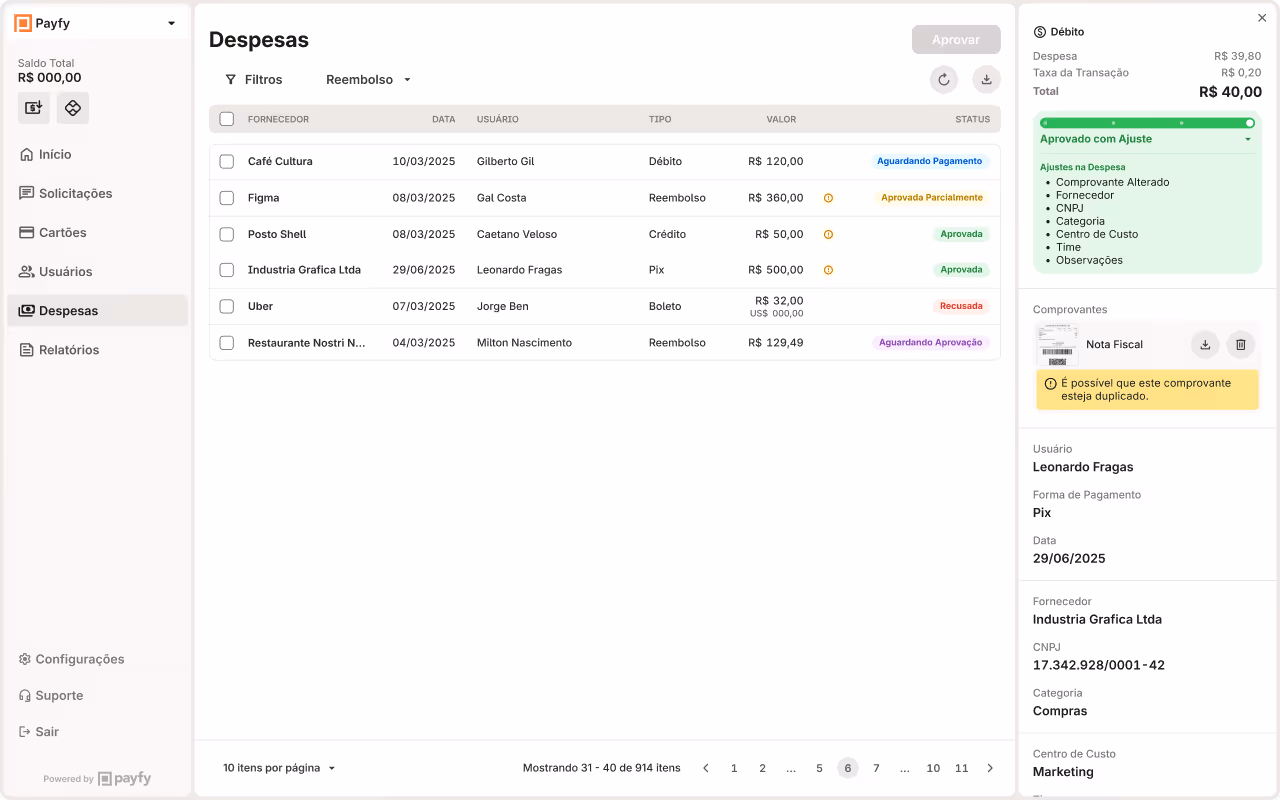 Aprove despesas, receba notificações de gastos fora da política e evite fraudes.